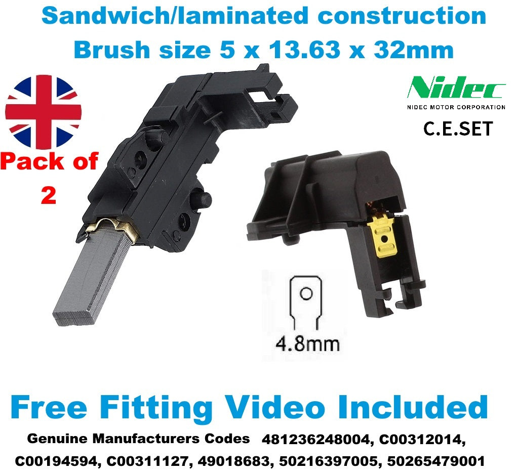 Aeg Bosch CESET Electrolux Smeg Whirlpool Zanussi Washing Machine Carbon Brushes C00194594